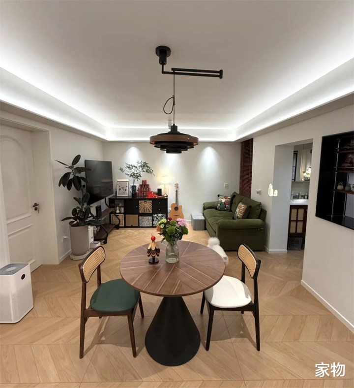 尤其这圆餐桌,放在中间位置不影响两侧过道的同时,也为室内空间增添了几分复古的感觉。