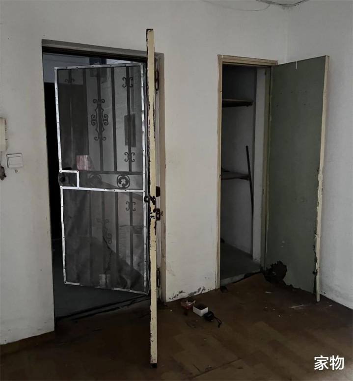 原本玄关一进门的位置,就能感受到这老破小的“年代感”,无论是纱网外门,还是薄薄的室内门,都给人一种破旧衰败的感觉,入户玄关旁边的壁橱更是如此,连木门都受潮变形、漆面脱落了。